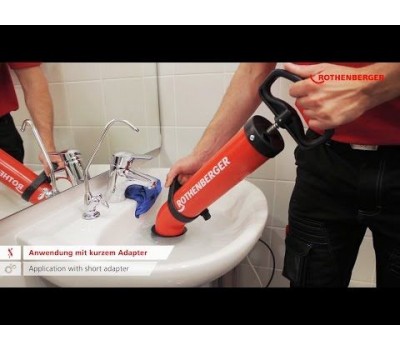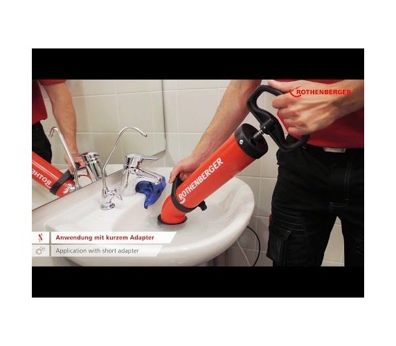 Optimal entry-level tool for installers, janitors and drain cleaners for the quick removal of simple blockages in connecting pipes of washbasins and sinks, tubs and toilets using the suction/pressure principle.