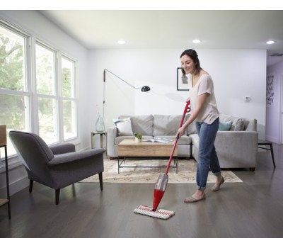 Control the spray, using the lever on the handle, for just the right amount of moisture depending on your floor type. The spray covers the full width of mop head