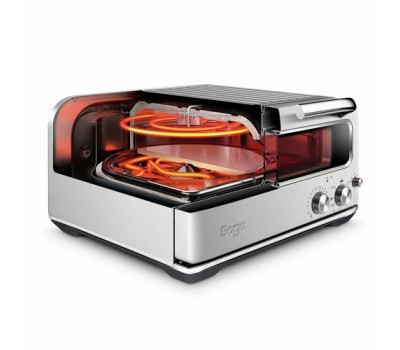 Intense radiant heat is evenly controlled by Sage's patent pending heating elements so you no longer need to rotate food while cooking. Heat intensifying parabolic reflectors maximise the efficiency of the top heating elements by reflecting the energy onto the crust. Integrated deck to door design moves the pizza closer to the elements and makes it easy to load and unload.