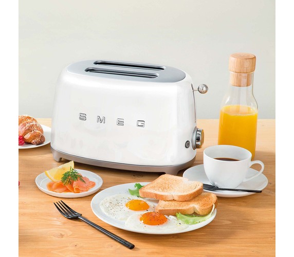 Smeg's iconic retro design offers a pop of colour and a premium enamelled finish. Whether you're preparing breakfast before the school run, or a luxurious breakfast in bed, the Smeg TSF01 two slot toaster has got it covered. This two slice toaster is perfect those who like to make a statement in the kitchen, but can also handle warming pastries, bagels, and toasting treats!
