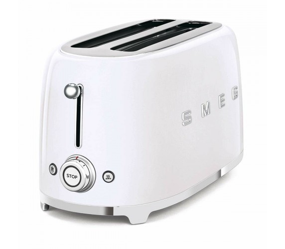 Smeg's iconic retro design offers a pop of colour and a premium enamelled finish. Smeg's TSF02 features two long extra wide bread slots which can accommodate a variety of bread thicknesses including toasting baguettes, thick farmhouse loafs and artisan breads. Each slot features a self-centering rack to ensure even toasting and once the selected toasting time has finished, the slices pop up automatically.