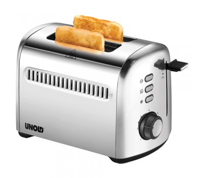 The TOASTER 2er Retro brings the soft curves of the 50s retro style into the kitchen ambience - and the shiny stainless steel finish makes it a decorative eye-catcher that is not only stylish, but also practical! The 2-slice toaster has space for classic slices of toast - so the crispy part of breakfast is ready in no time. With four functions, the TOASTER 2er Retro in its high-quality stainless steel housing leaves nothing to be desired: whether defrosting slices of bread, warming up/toasting again, toasting or quickly stopping (so that the browning is just right): everything can be selected very easily at the touch of a button! There are also seven levels of browning adjustable, so there is the right crispy factor for every taste! The 790 to 950 watts bring power into play! The slices of bread are automatically centered - and the operating indicator lights show what the TOASTER 2er Retro is currently doing! Of course, there is a removable crumb tray - and the space-saving cable storage in the base of the TOASTER 2er Retro is just as standard as the anti-slip feet for a secure stand.