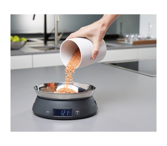 These clever digital scales can be used either by placing the items directly onto the scales using your own bowls, or, if you flip the top over, it becomes a measuring bowl itself.