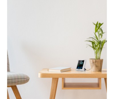 Humidity is also an important factor, as high humidity levels can cause mould to form. You can also set your own visual alarm for this reading so that you will know whether the air in the room is too dry or too moist. If you want to see more than just the current readings, there is also a practical memory function that displays the maximum and minimum values for the last 24 hours as well as the average values from the last 15 minutes and 8 hours for carbon dioxide concentration, temperature and humidity. The device is powered by a power adapter to enable continuous operation.