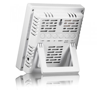 The practical carbon dioxide alarm reminds you when you need to let in some fresh air. If the default setting is different to your ideal indoor climate, you can configure you own limit up to a maximum of 5000 ppm. The alarm function can then be activated with a simply button press. If the preset limit is exceeded, the alarm will sound at a varying intensity depending on the CO2 concentration. The display will also show a flashing arrow symbol to remind you to open the windows.