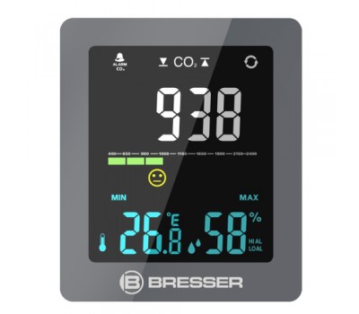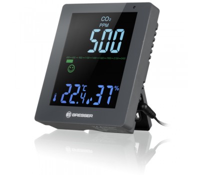 Endless meetings, urgent work emails, looking after the kids, cleaning the flat... during our hectic lifestyles, its easy to forget about regular ventilation. Even though we know better: a high CO2 concentration cam affect our health and wellbeing. The BRESSER CO2 air quality monitor Smile will show you when its time to let some fresh air into your home or office. Simply take a quick look at the intuitive LED display to keep an eye on the CO2 concentration, temperature and humidity. You dont need to worry about remembering what constitutes a critical carbon dioxide level - the intuitive graphical display with a linear scale and smiley face will show you the quality of the air in your surroundings. The measurements are precise, with high resolution and fast.