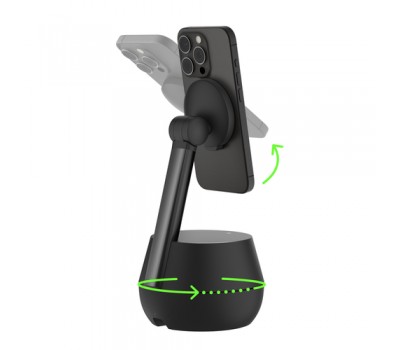The easiest way to FaceTime, create action-packed videos, and go hands-free for livestreaming and video conferencing is here. Our Auto-Tracking Stand Pro follows your face and body movements with 360° rotation and 90° tilt with smooth, quiet motors. Grab and go — the internal battery offers 5 hours of operation on a full charge.