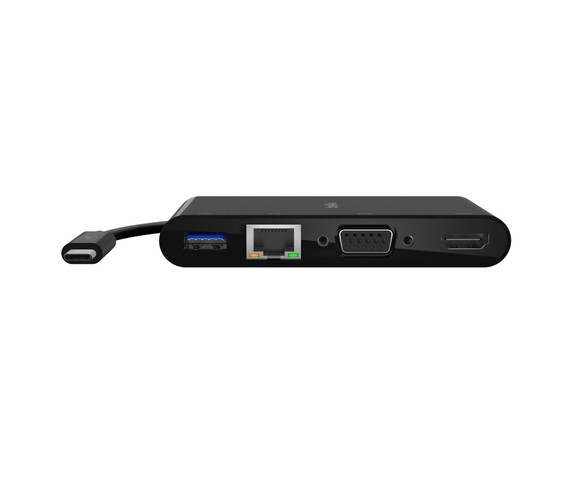 Simplify your multimedia and connect everything you need through one compact adapter. Compatible with devices that have a video-enabled USB-C® port, it’s the perfect tool for sharing your laptop or tablet screen with a crowd. The adapter supports Gigabit Ethernet, USB-A 3.0, VGA, and 4K HDMI, making it ideal for meetings, classrooms, and on-the-go presentations. The simple plug-and-play technology is compatible with Mac and Windows laptops and other USB-C devices.