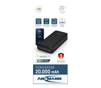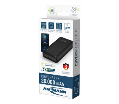With a charge capacity of 20000 mAh and an output power of up to , the compact powerpack is able to charge mobile devices several times. The high-quality external battery pack with sturdy housing is compatible with all standard USB devices such as smartphones, tablets, mobile phones, MP3 players, navigation units and many other devices that can be charged via USB. Thanks to the new Power Delivery (PD) protocol, notebooks can now also be charged via the Type C port.