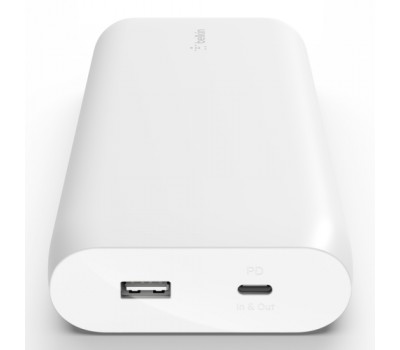 Our USB-C® Power Bank 20K has 20,000 mAh to provide up to an additional 20 hours of battery life to your MacBook, up to 28 hours to your iPad or up to 77 hours to your phone. Powerful enough to fully charge a USB-C laptop, it ensures your productivity remains uninterrupted. Convenient USB-A and USB-C ports keep devices charged without plugging into a wall outlet, so you can video conference for work or stream movies on long flights.
