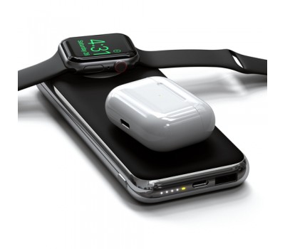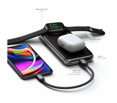 Designed as your go-to portable charger, the Quatro Wireless Charger is equipped with a built-in Apple Watch charging module to wirelessly power your smartwatch – no cables needed. Note: Once powered on, activate the Apple Watch and Qi charger by double-clicking the side button.