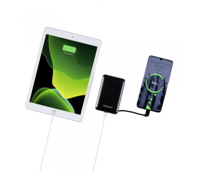 With 10000 mAh the Powerbank has enough capacity to recharge smartphones several times. The integrated cable allows fast charging with up to 3.0 amperes, the USB connection supplies 2.4 amperes. It is even possible to charge 2 devices in the same time via both connections.