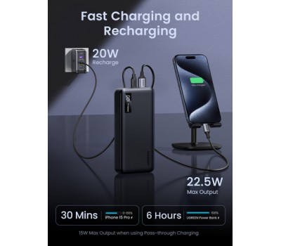 Safe and fast charging: Ugreen power bank has passed the UL certification of testing standards set by Underwrite Laboratories Inc, its battery cells have passed the IEC 62133 standard set by the IEC, the quality is passed and there are no hidden dangers in use
