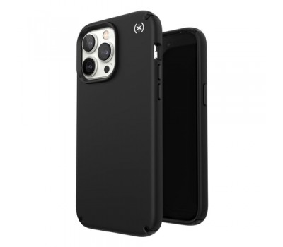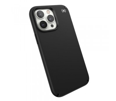 Speck Presidio2 Pro MagSafe compatible Built-in magnets (MagSafe compatible) makes the right click with all Apple MagSafe accessories The most advanced and technological case ever designed by Speck Microban antimicrobial protection finish: Kills up to 99% of all germs on the case for a cleaner surface 13-foot (4 meter) certified Drop protection Armor Cloud Technology: breakthrough in device protection – thanks to the power of air pockets and air compression that hugs the phone on drops and shield it from damage, like million little airbags inside the case embracing your phone Soft-touch matte finish provides a luxurious feel, a more enhanced look & added durability Raised bezel technology resist screen damage on face-down drops 10% SLIMMER: Even more pocket-friendly with a 10% slimmer case design Improved button material for a premium user experience Revised logo treatment Case is QI wireless charging compatible (only for devices that support QI wireless charging ) This case is a Apple MagSafe certified product and compatible with MagSafe charging (only for devices that support MagSafe wireless charging ) Colour: black Compatible with: Apple iPhone 14 Pro Max