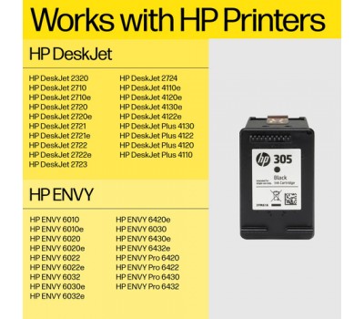 - HP 305 ink cartridges work with: HP DeskJet 2300, 2700, 2700e, 2730, 2810e, 2820e, 2821e, 2822e, 2823e, 4100, 4100e, 4134, 4210e, 4220e, 4222e, 4230e HP ENVY 6000e HP Envy 6000e, 6010, 6020, 6022, 6030, 6032, 6400e, 6420, 6420e, 6422, 6430, 6432