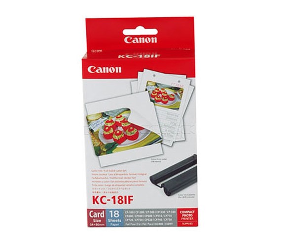 A range of SELPHY media is available for a variety of printing projects. SELPHY ink and paper sets come with just the right amount of ink and paper for the number of photos you want to produce, so you can always replace both in one easy step. Printing with KC-series media requires the use of a separately sold card-size paper cassette.18 credit-card size stickers measuring 54 x 86mm (2.1 x 3.4').