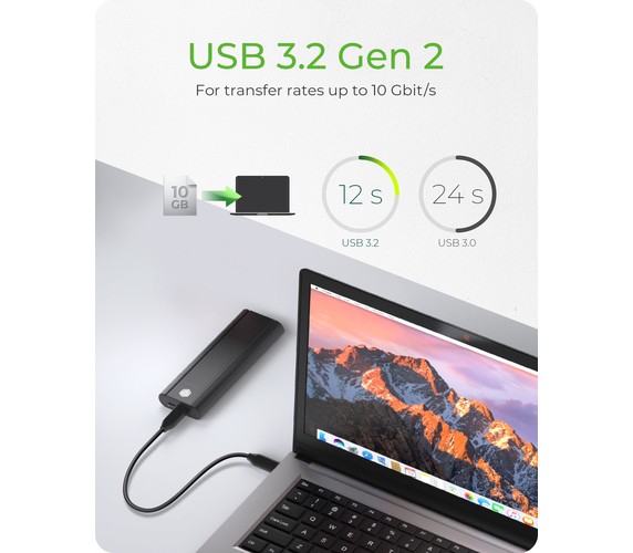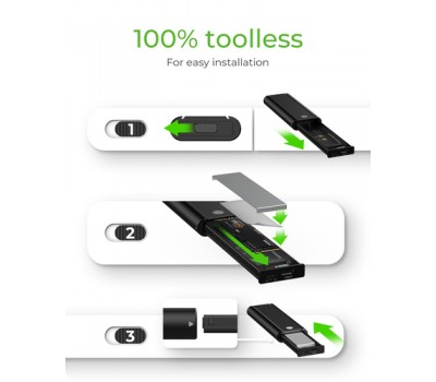 You can install your M.2 SSD in the IB-1807MT-C31 housing without any tools: simply open the latch, fix the SSD in the holder and close the housing again. You can then exchange data at speeds of up to 10 Gbit/s via the USB Type-C connection.