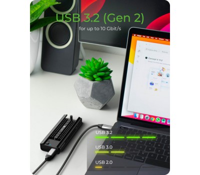 Regardless of whether you want to use an M.2 SSD in NVMe or SATA standard, with the IB-180MC-C31 DockingStation you make the right choice. M.2 storage in sizes of 22x 42, 60 or 80 mm find their place here and you have fast data access thanks to transfer rates of up to 10 Gbit/s.