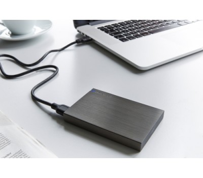Combining a high-quality design with great performance, the 2.5" Memory Board external hard drive is a must-have storage solution for transferring and securing photos, videos, music and other data. The hard drive impresses with a modern enclosure design made of aluminium in anthracite and is particularly easy to stow thanks to its compact shape. A modest logo engraving and blue LED display are additional optical highlights.