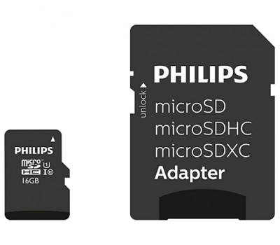Philips Class 10 UHS-I U1 microSD memory cards offer the right performance for applications that require a high writing speed, such as Full HD video recording.
