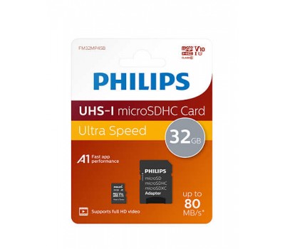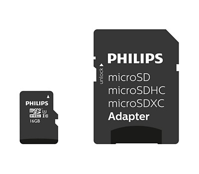 Philips Class 10 UHS-I U1 microSD memory cards offer the right performance for applications that require a high writing speed, such as Full HD video recording.