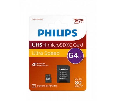 Philips Class 10 UHS-I U1 microSD memory cards offer the right performance for applications that require a high writing speed, such as Full HD video recording.