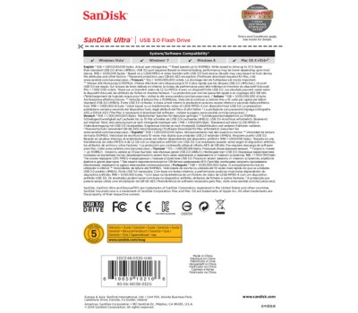 The SanDisk Ultra USB 3.0 Flash Drive is backed by a five-year limited warranty.