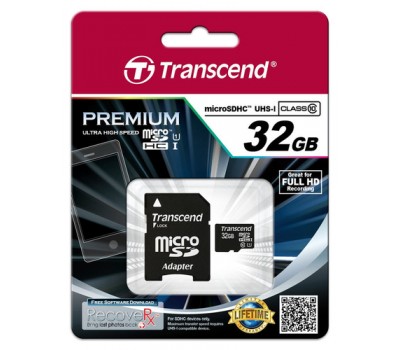 Transcend microSDXC/SDHC Class 10 UHS-I 32GB with Adapter (TS32GUSDU1)