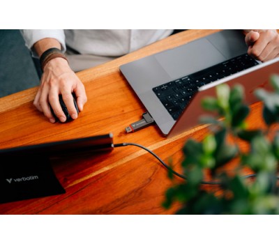 The Verbatim Dual QuickStick offers the speed and performance of an SSD in the compact form of a USB drive. With lightning-fast read speeds up to 550MB/s and write speeds up to 500MB/s, you can transfer large files in seconds.