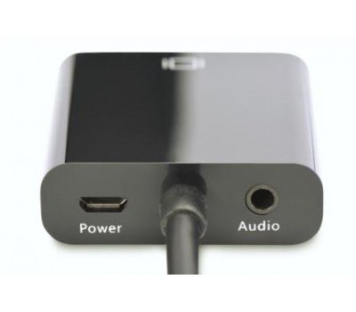 The DIGITUS DA-70461 converts digital HDMI signals into analog VGA signals. Modern playback devices, such as notebooks, Blu-ray players, DVD players, game consoles, etc., can be connected with older VGA monitors or projectors. The converter is also equipped with a 3.5 mm audio jack. Any existing audio signal is converted in parallel. This enables additional audio playback by connecting your speakers or surround sound system.