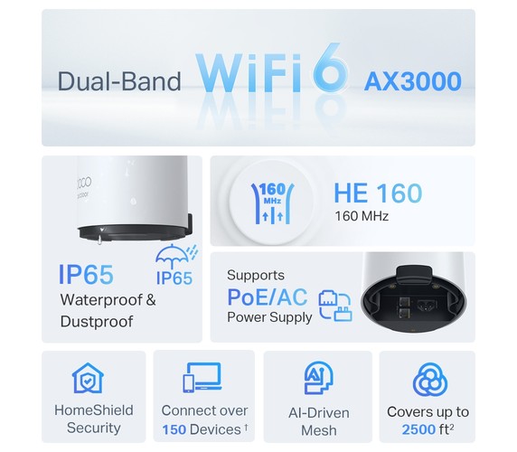 TP-Link AX3000 Outdoor / Indoor Whole Home Mesh WiFi 6 Unit (DECO X50-OUTDOOR)