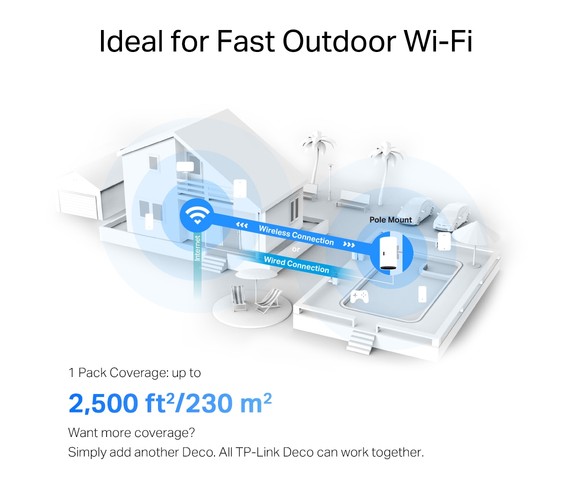 Deco X50-Outdoor is compatible with every other Deco model to form a Mesh network. Expand Mesh WiFi coverage anytime by adding more Decos.