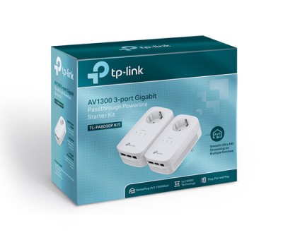 The TL-PA8030P KIT transmits data over gigabit Ethernet ports, creating secure wired networks for true gigabit-class broadband speeds. This makes the TL-PA8030P KIT well suited for audio and video streaming, online gaming, multi-room IPTV and other high-demand networking uses. It also provides five extra Gigabit ports so users simultaneously connect wired devices like smart TVs, media streaming devices, game consoles, external hard drives, or desktop computers to ensure maximum connectivity.