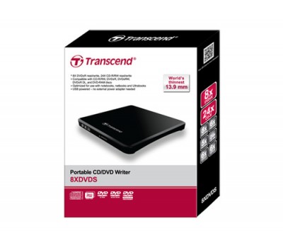 Transcend's Slim Portable DVD Writer can be used right out of the box, requiring no driver or external power. It supports data transmission on dual layer discs, reading and writing data at up to 8x DVD±R and up to 24x CD-R/RW read/write speeds for optimum efficiency.
