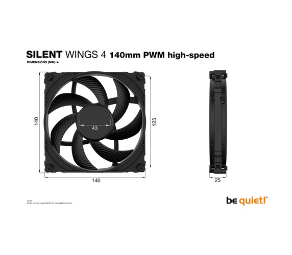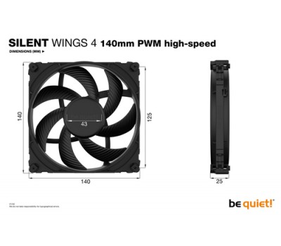 Silent Wings 4 140mm PWM high-speed combines all features of a virtually inaudible with an extremely performant fan. A 6-pol-motor and anti-vibration mountings combined with fan blades optimized for maximum airflow make Silent Wings 4 140mm PWM high-speed the perfect choice for the most demanding applications in high-end systems.