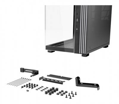 Light Base 600 DX Black features a flexible VGA holder that subtly prevents your GPU from sagging. The best part: This holder works in any orientation and with a horizontally or vertically installed graphics card. The result is a clean look even if you use big and heavy graphics cards.
