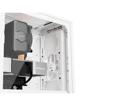 Despite its compact dimensions, Pure Base 501 Airflow Window White offers enough space for high-end graphics cards and large coolers. 3 fans or a radiator up to 360mm can be installed easily at the front, while the top area provides space for up to 2 fans or a radiator up to 240mm.