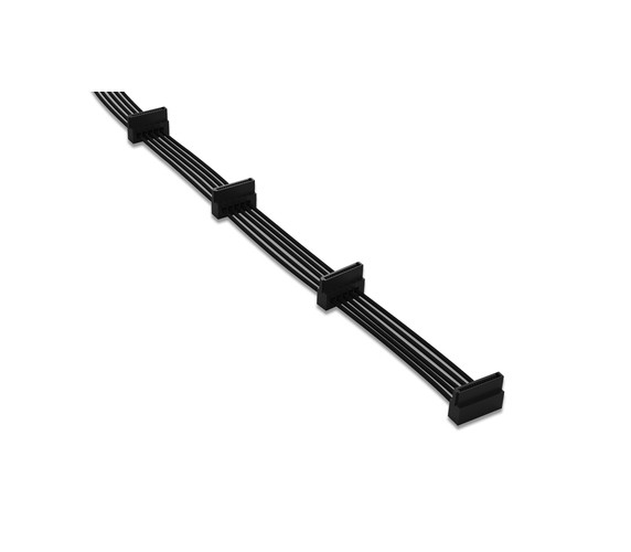 The 4x S-ATA power cable for modular be quiet! power supplies offers maximum comfort and flexibility. Covered with individual sleeves in opaque black they meet even highest demands. For all who want to give their PC the finishing touch.