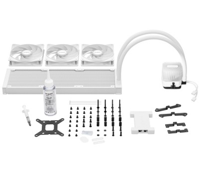Light Loop 360mm White complements all-white systems best, thanks to its uniform white aesthetics. The integrated ARGB LED lighting within the cooling block and fans allows the vibrant lighting to take center stage.