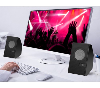 This speaker 2.0 stereo offers powerful sound and sound reproduction. Despite the space saving design, this device does not compromise on sound quality, producing a well-balanced speaker system with nearly distortion-free sound. Power is supplied via the USB chord, and the connection is via a 3.5 mm jack plug and therefore suitable for multiple devices such as a PC, notebook or MP3 player. In addition, the Bluetooth function enhances functionality by allowing you to play music without turning on the PC or notebook.