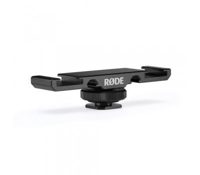 The DCS-1 is a dual cold shoe mount for mounting two microphones or cold shoe accessories on a device with a single cold shoe mount. Constructed from lightweight aluminium, it is sturdy and discreet and is compatible with all RØDE products that feature a cold shoe adaptor. It also includes cable management slots for select RØDE audio cables.