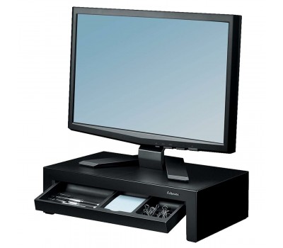 A few easy adjustments to your workstation can make a huge difference to your daily routine. Moving your head to view your screen or to read documents requires you to tilt and turn your neck and upper back. Positioning your screen incorrectly can put serious strain on your eyes, neck and shoulders which is why this Fellowes Designer Suites monitor stand is a necessity for your workspace as it allows you to place your monitor at a more ergonomically-correct viewing position to suit you. This adjustable monitor stand can support large CRT or TFT monitors with a maximum weight of 18 kg and its space saving design allows you to stow your business essentials underneath the monitor riser for in-office use or at home to help keep your workspace nice and tidy. Accommodate the Ideal viewing angle that best suits your needs, the Designer Suites computer stand features three height adjustable settings (Height Adjustments: 11/13/15cm) allowing you to find a comfortable screen position accustomed to you. This monitor riser has been tested by FIRA International Ltd to comply with the ergonomic requirements set out in European Health and Safety Legislation: EN ISO 9241-5.