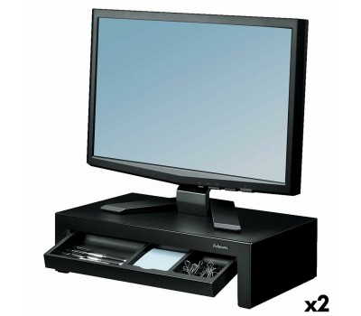 Fellowes Computer Monitor Stand with 3 Height Adjustments - Designer Suites Monitor Riser with Storage Tray - Ergonomic Adjustable Monitor Stand for Computers - Max Weight 18KG/Max Size 21" - Black/Pearl (8038101)