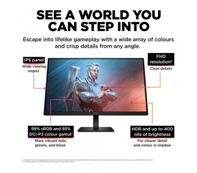 Reach new possibilities with the OMEN by HP 27-inch FHD 165Hz Gaming Monitor. Quick performance and vibrant color let you get lost in the games you love most, while the sleek design functions to look and feel great on your desk.