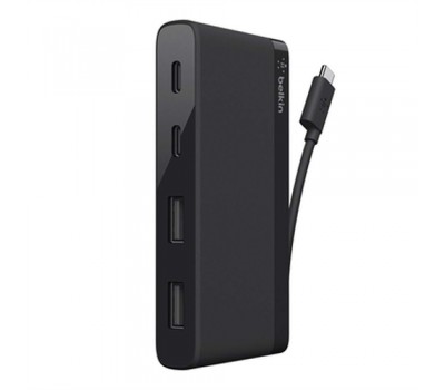 Connect your new USB-C laptop, to multiple USB devices with this comprehensive port expansion hub. Two USB-C ports connect new devices, while two USB-A ports allow easy connection for existing devices, such as a hard drive, mouse, keyboard or printer. Small and compact, with a tethered USB-C cable, the hub is an ultimately portable and comprehensive peripherals solution.