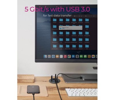 The USB 3.0 interface can reach data transfer rates of up to 5 Gbit/s so you can transfer your data comfortably from A to B.