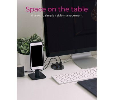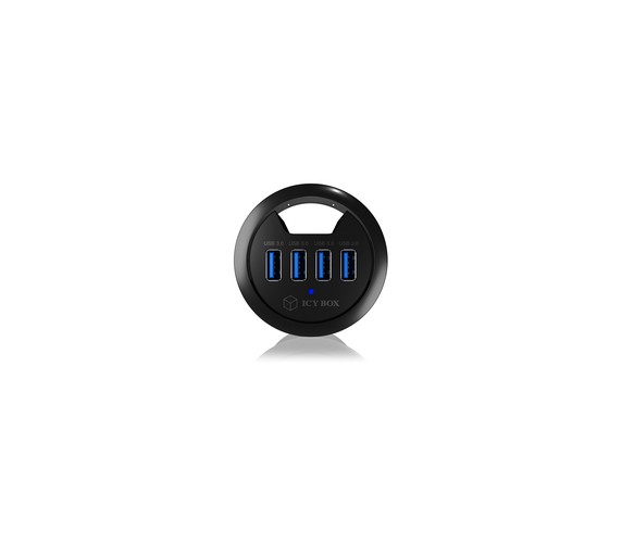 The IB-HUB1403 brings USB Ports to the Table, while doing this it saves place and uses the already present cable management holes.