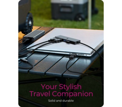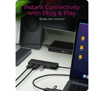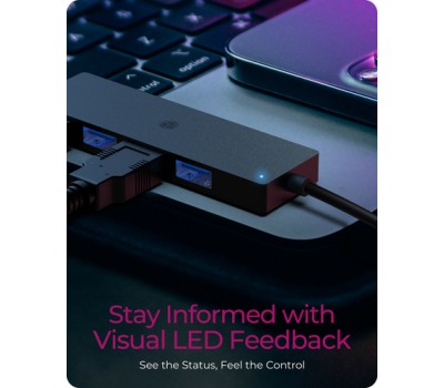 The compact, black plastic hub fits perfectly into any setup. Its handy size makes it the ideal companion when you’re on the go. Whether you’re in the office, at home or travelling, you’ll love the flexibility and functionality of this hub.