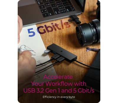 Experience lightning-fast data transfers thanks to USB 3.2 Gen 1 via your choice of USB Type-C ® or Type-A port. Transfer files at up to 5 Gbit/s and connect peripherals with ease. This hub allows you to multi-task without compromise.