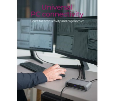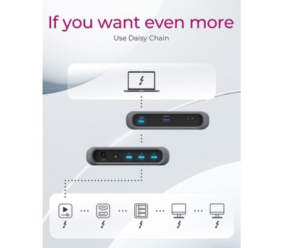 Thunderbolt™ 4 supports high-resolution displays and high-performance data within one port, as well as connecting your computer to multiple devices via a daisy chain of cables. This also allows the hub to be daisy-chained with a larger DockingStation such as the IB-DK8801-TB4 for even more connections.